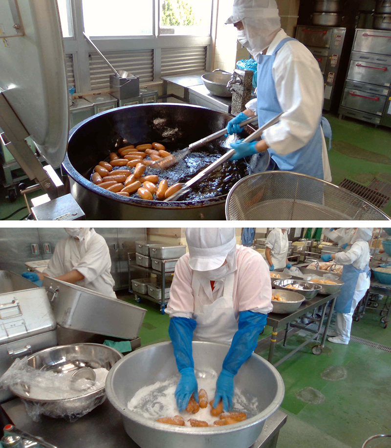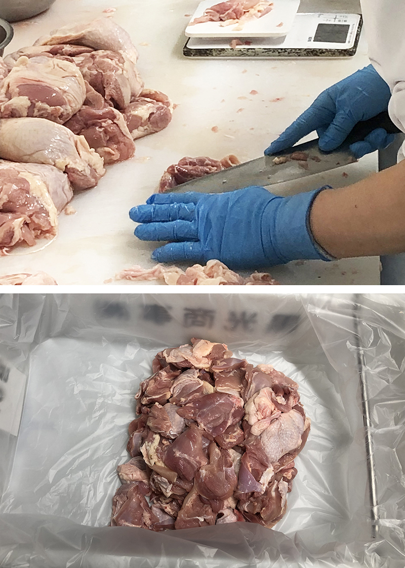 こだわりの鶏肉「学給とり」は、自社の加工設備にて給食に使いやすいサイズに切り分けられてから各学校に届けられます