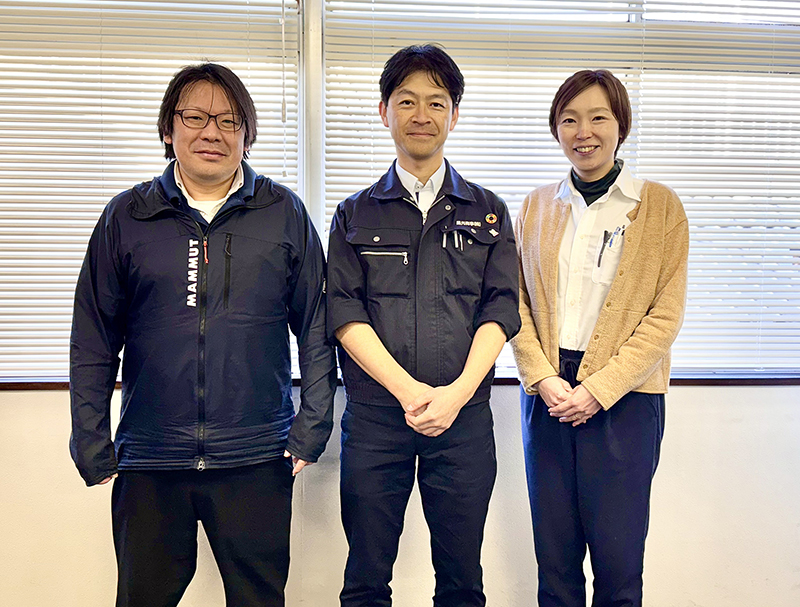 黒光商事株式会社代表取締役の松本吉広さん(中央)、営業部・製造部・商品開発室次長の近藤裕二さん(左)、営業部・商品開発室課長代理で管理栄養士の原田美那さん(右)