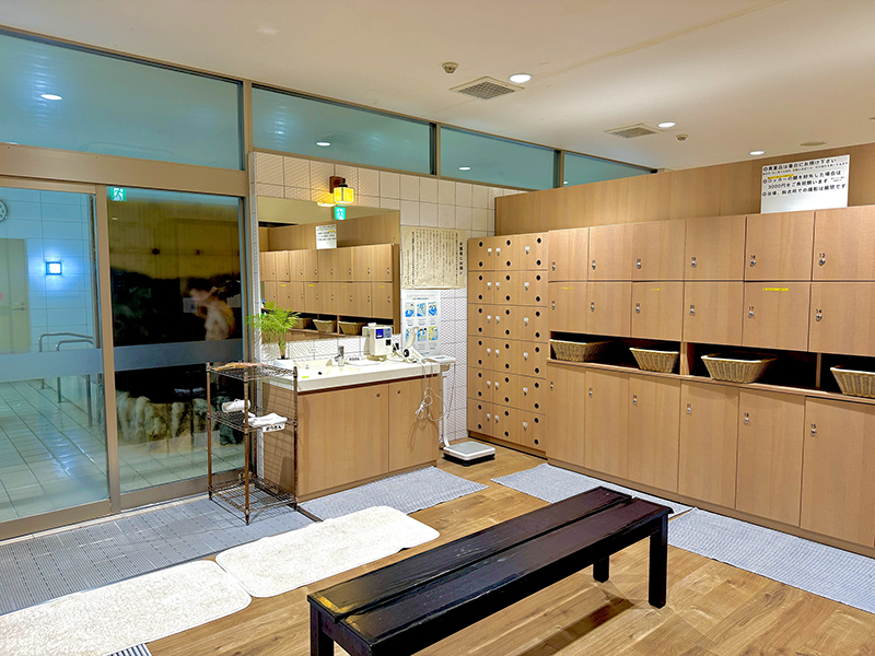 脱衣所には、コイン式ドライヤー(女性のみ)や体重計など、今も現役で使われている機械が並び、銭湯文化の息づかいを感じさせます。