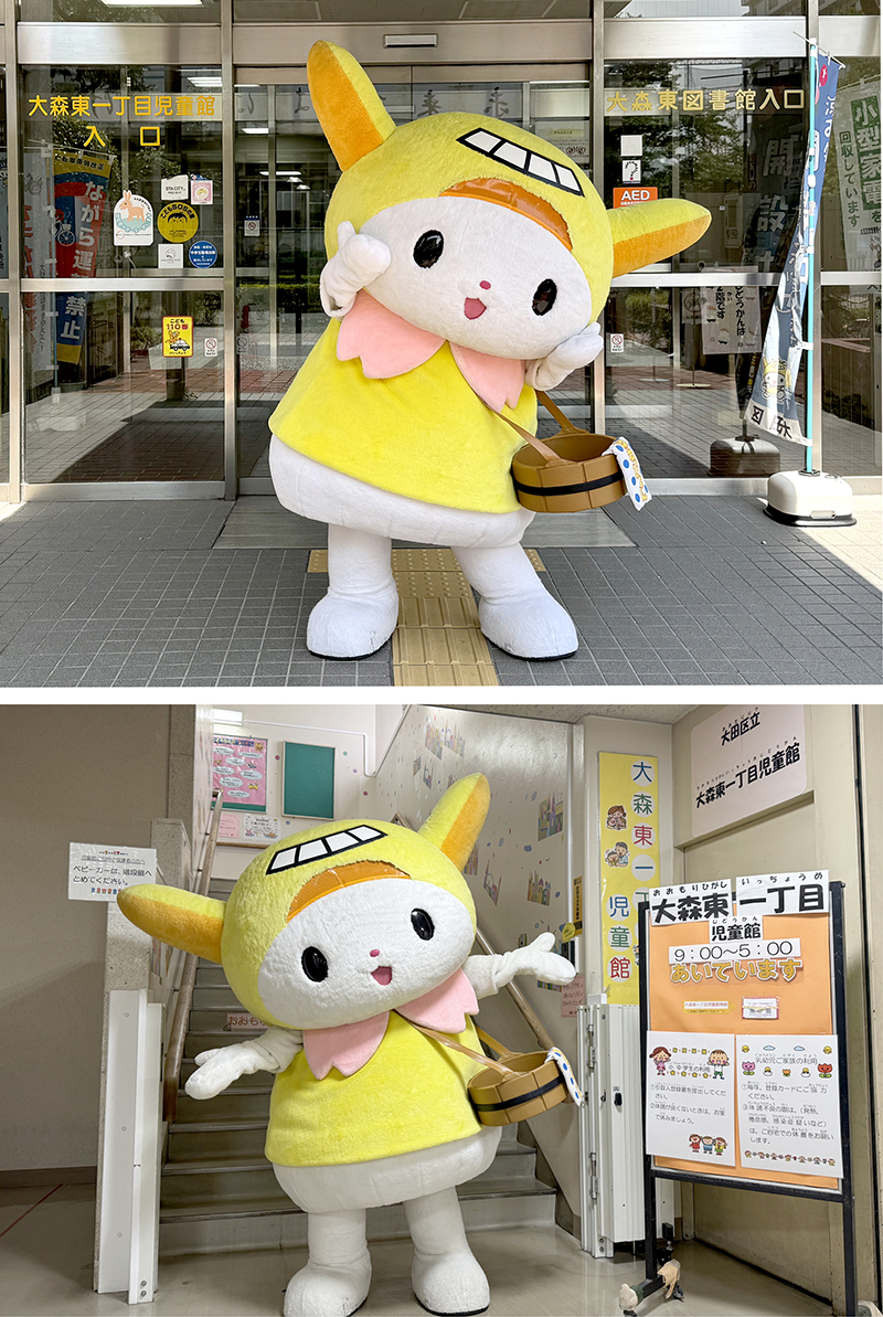 はねぴょん:大森東一丁目児童館は、大森東図書館の2階にある児童館だぴょん! 今日はみんなに会えるのが楽しみはね~!