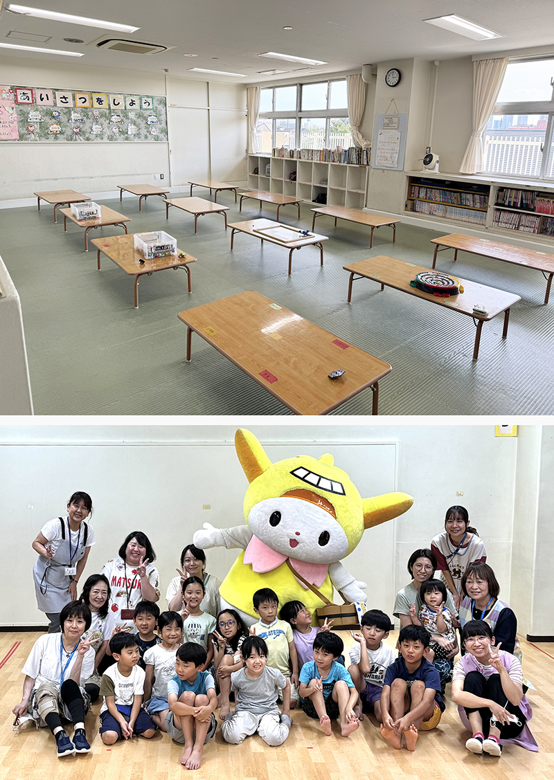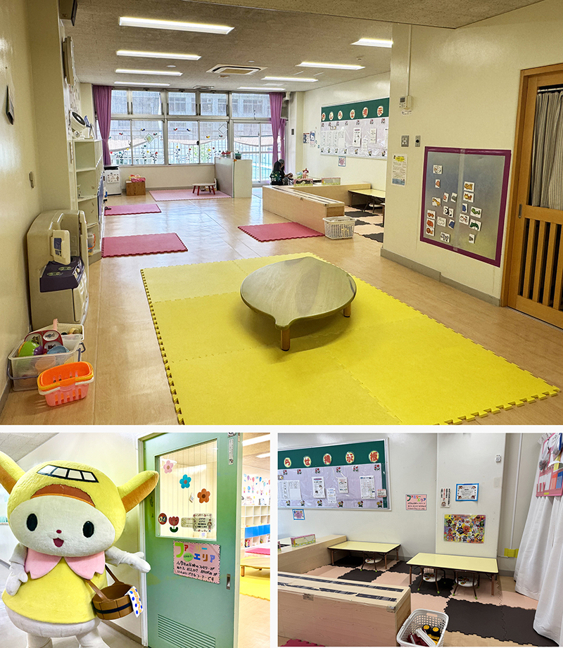はねぴょん:幼児さん向けのおもちゃがたくさんあるお部屋だぴょん。小学生のお兄ちゃんやお姉ちゃんも同じお部屋で過ごせるよう、小学生も使える「ファミリーエリア(画像右下)」も用意されているはね~。