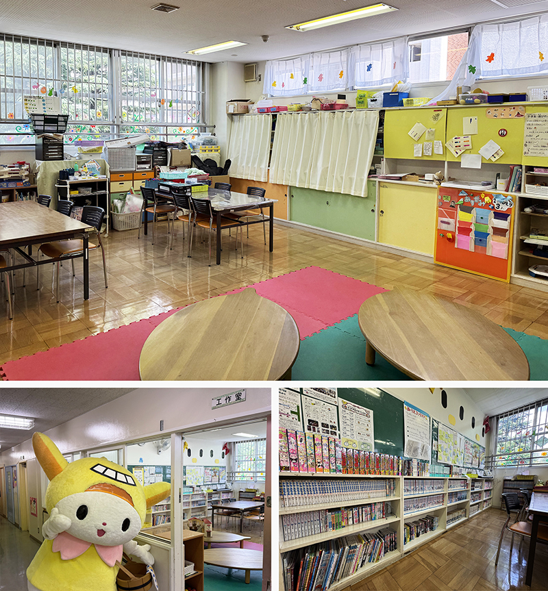 はねぴょん:小中学生向けのお部屋だぴょん。工作をしたり、ボードゲームで遊んだり漫画を読んだりしてすごせるはね~。お部屋がすいている時は、年長さんも保護者と一緒なら利用できるぴょん!