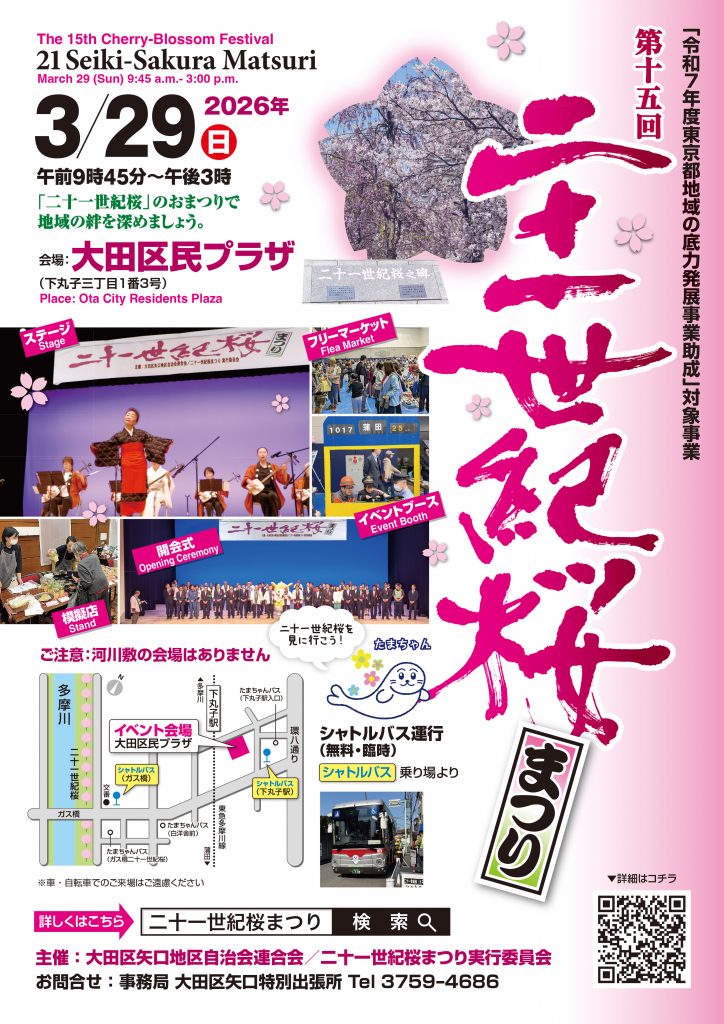 3月29日(日)に、矢口地区の【地域力】の象徴ともいえる「二十一世紀桜」のおまつりを今年も開催します!
