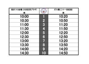 会場(大田区民プラザ)と多摩川ガス橋緑地の二十一世紀桜を結び、無料で運行します。