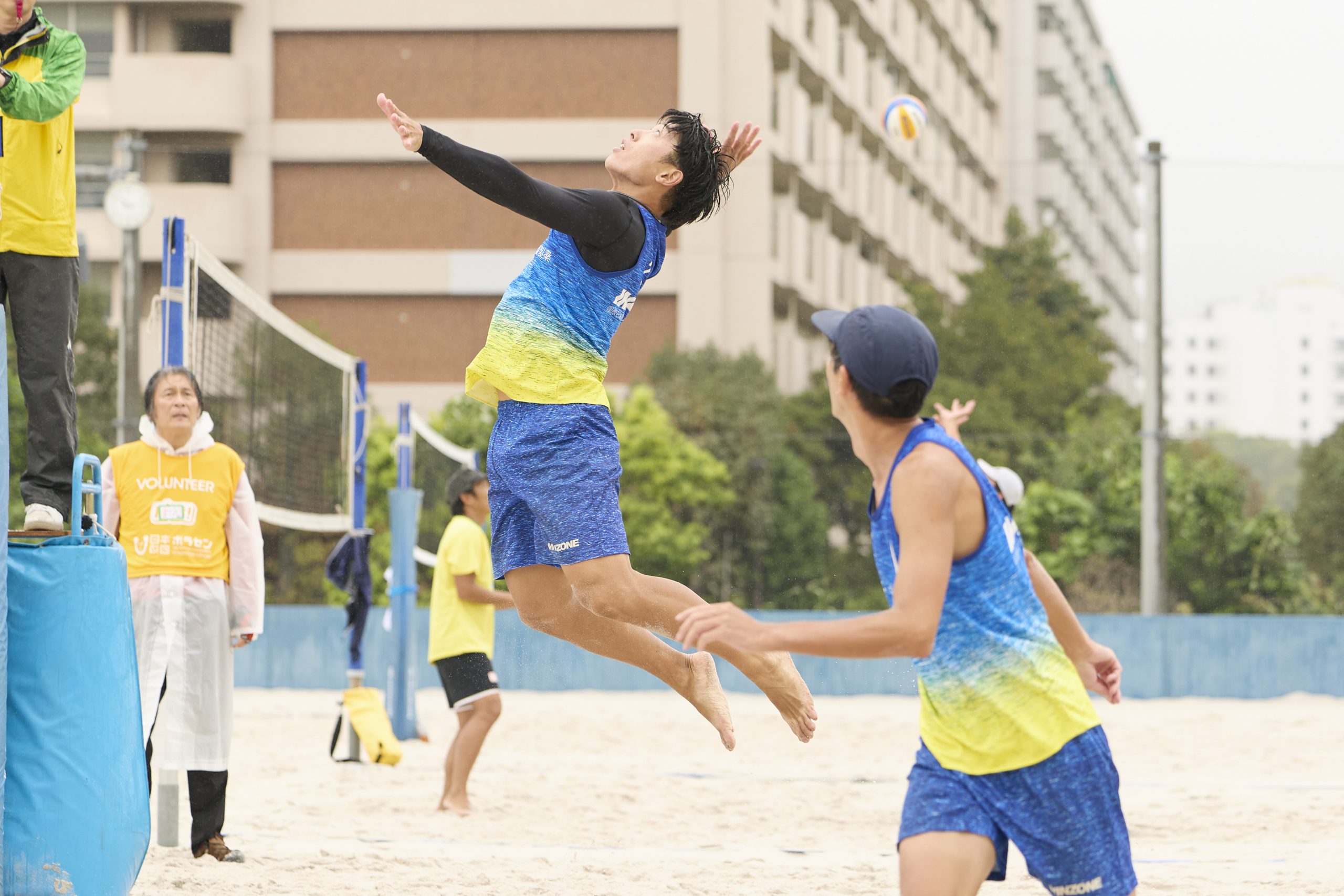 ペアの今井選手が上げて、僕が強いスパイクを打つことが多いので、そういったところをぜひ見て欲しいと思います。