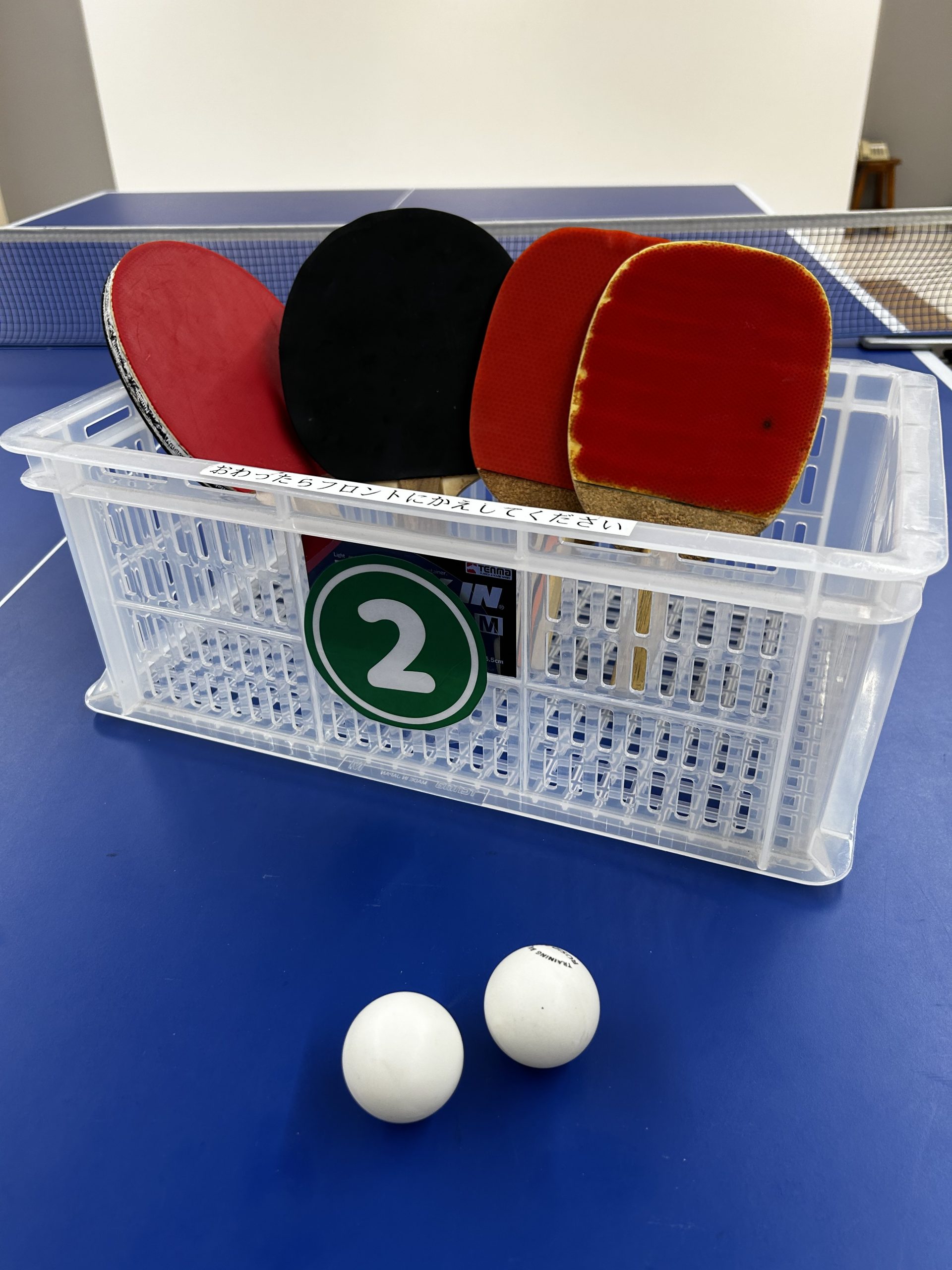 受付脇に何やら楽しそうなグッズがありました。よく見るとバスケットボールやバレーボール、卓球のラケットなど無料で貸出をしていると。そして奥の多目的室には卓球台が2台並んでいて、旅館を思わせる風景が。これには私もそのわくわくに誘われ卓球道具を拝借。こどもの時以来の卓球に、我を忘れて、心おきなくスマッシュを相手に打ち込む。なんという爽快感でしょう。温泉と卓球は切っても切れない、そんな一幕に感激しました。