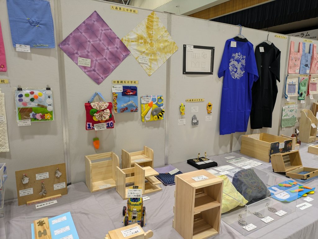 小学校では「おおたの未来づくり」の教科、中学校では技術や家庭の授業において制作した力作に、親御さんや多く関係者の方が熱心に見入りました。