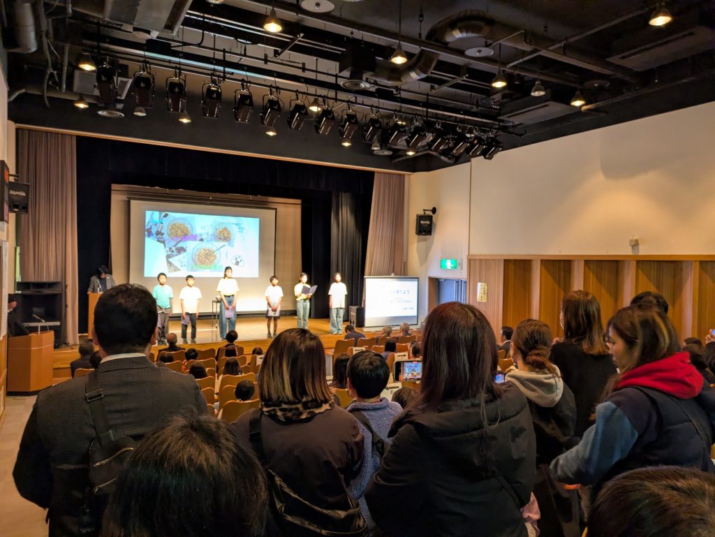 小ホールで行われた舞台発表では、小学校9校、中学校5校に加え、六郷工科高等学校、東京実業高等学校、六郷BASE(大田区創業支援施設)の皆さんが参加。