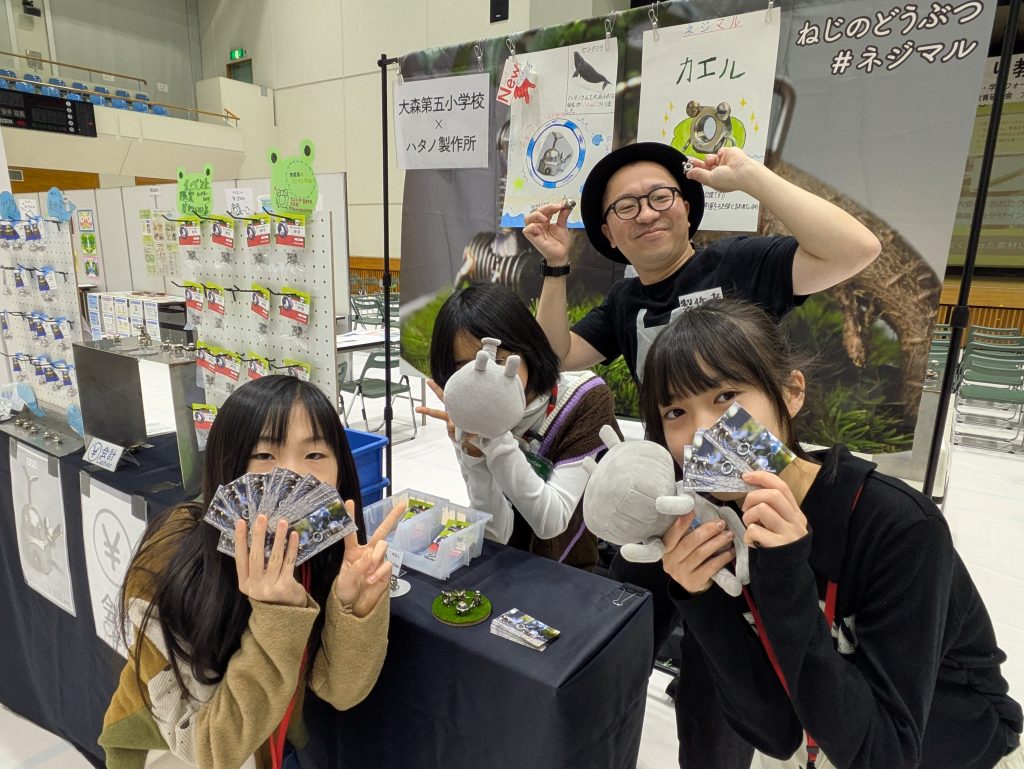 大森第五小学校の5年生は、地元企業のハタノ製作所さんと一緒に、「ネジマル」(ねじを使った動物のフィギュア)を製作・販売しました。ハタノ製作所さんは、大田区で溶接などの金属加工を行う町工場です。