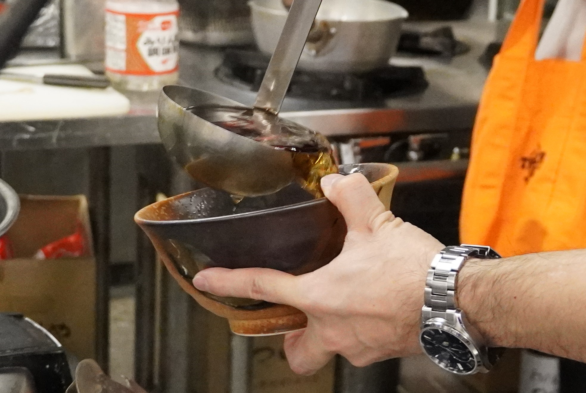 その後、出汁の香り立つつゆを回し入れると、ふわっと鰹と昆布の香りが立ち上ります。