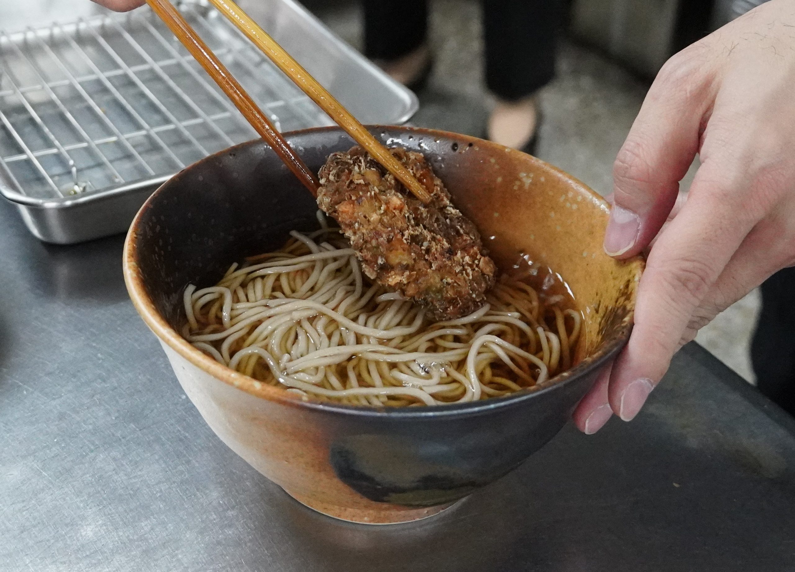 湯気とともにそばの香りがふわっと立ち上がり、食欲を刺激します。