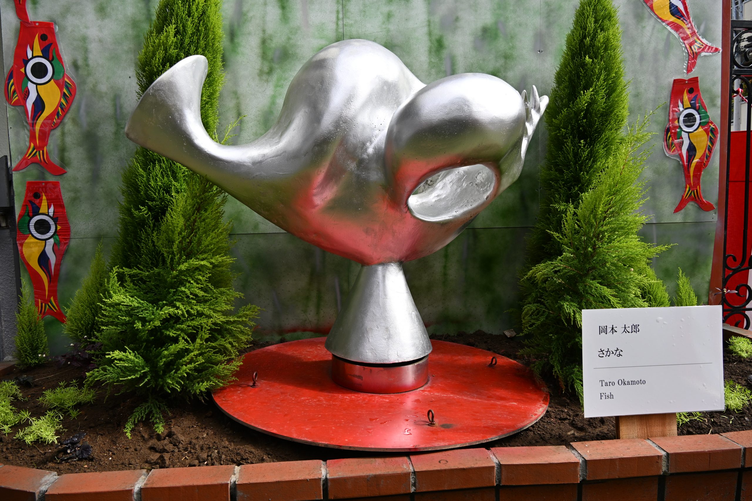 花壇には早速岡本太郎氏の作品が!美術館への期待感が膨らみます。