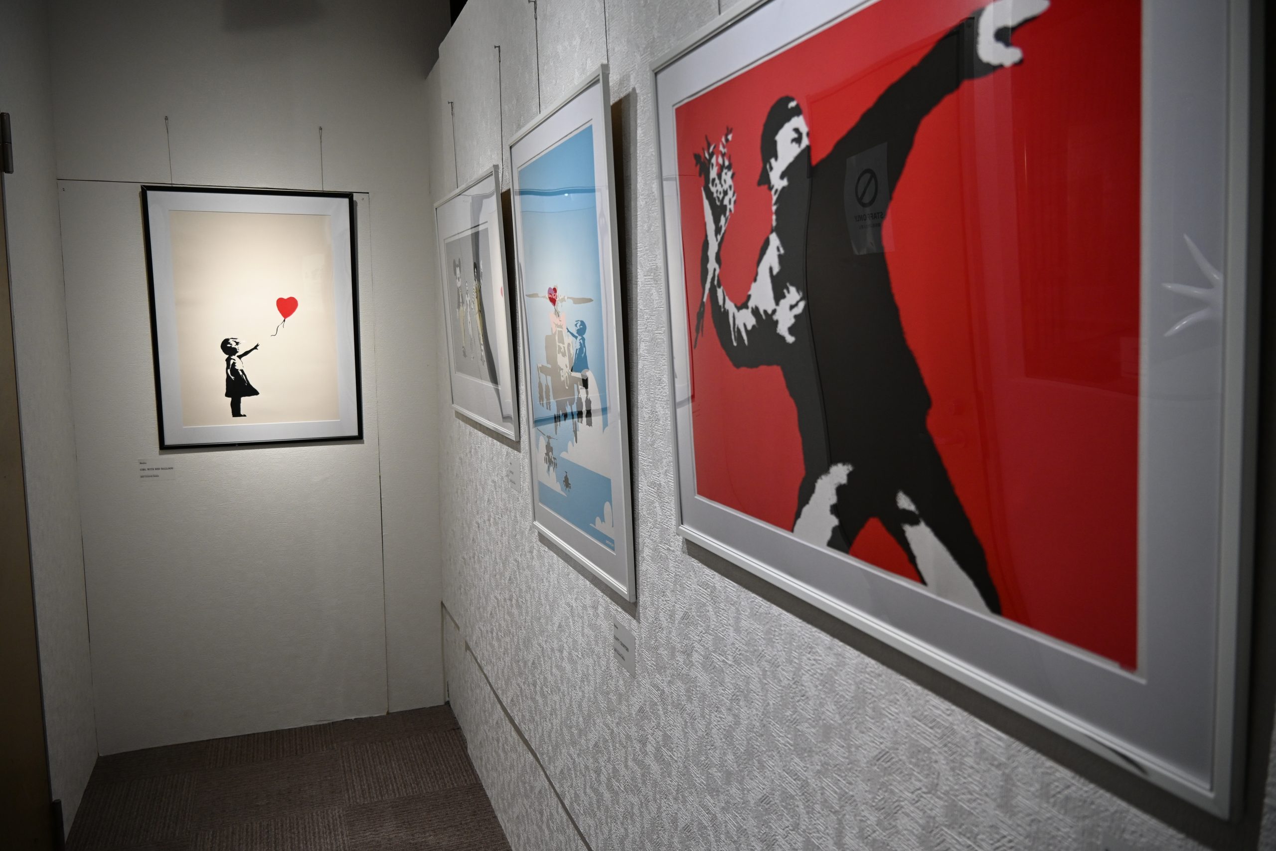 2階には、バンクシーや草間彌生などの現代アートの作品が目白押し!
